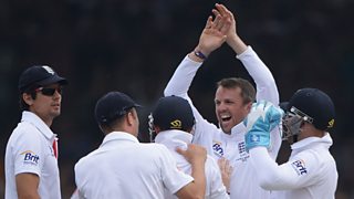 England's first innings ends with Stuart Broad out for 33.