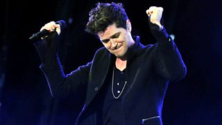 Greg James and Sarah-Jane Crawford introduce sets from the Script and Dizzee Rascal.