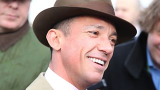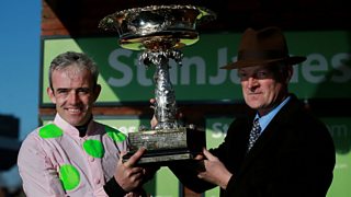 Detorri, who bred Dodging Bullets, reacts to victory in the Queen Mother Champion Chase.