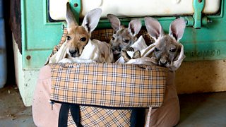 Eight months old kangaroo Stewie has a bad case of mites and has lost most of his hair. Kangaroo carer Anne-Marie gives the reluctant joey a medicated bath.