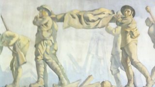 Painted mural of soldiers commissioned by the founder of the Women's Land Army