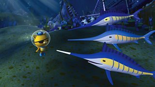 In search of a mythical sword, Kwazii explores a pirate shipwreck.