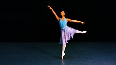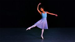 Francesca Hayward performs an arabesque