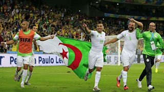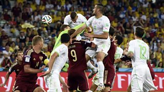 Algeria's Islam Slimani heads home from a free-kick to make it 1 - 1 against Russia.