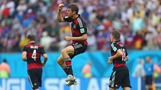 German's Thomas Muller scores only goal of game in victory over the United States.