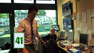 Rafa Nadal, Tim Henman and Amy Willerton attempt keepie-uppies with a tennis ball.