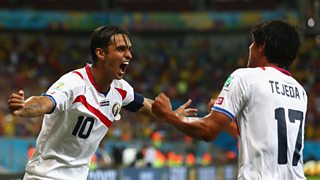 Bryan Ruiz rolls the ball delicately in to the net to make it Costa Rica 1 - 0 Greece.