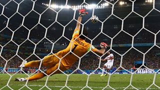 Highlights from Brazil last-16 World Cup victory over Chile, which went to penalties.