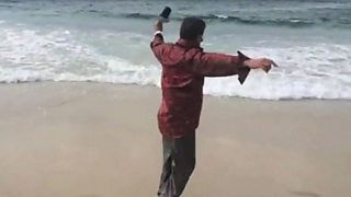 Brazil's Got Talent judge Milton Cunha shows us how to Samba on the beach.