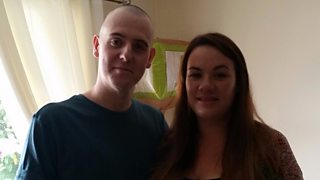 Ceri Dawson o Goedpoeth, a'i wraig Catrin sydd ar fin ca'l eu babi cyntaf