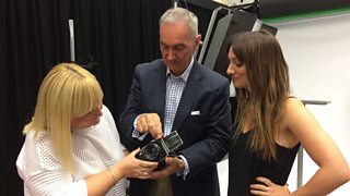 Sian Thomas gyda'r ffotograffwyr Catrin Arwel a'i thad, Arwel Davies.