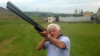 Peter Allen tries his hand at clay pigeon shooting at Glasgow 2014 - not as a competitor.