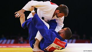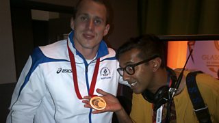 Scotland's Euan Burton tells Nihal where he's going to keep his judo gold medal