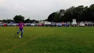 Inspired by meeting Gavin Hastings Nicky Campbell attempts a place kick