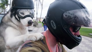 Sox the husky is visiting all 50 US states with his person Michael on a motorbike.