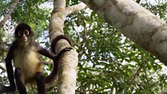 Young spider monkey needs dad's help—Jungles