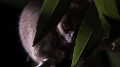 Frog on branch at night