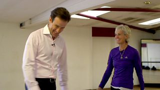 Judy Murray gets to grips with her dance partner Anton on their first day of training
