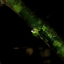 Frog on branch at night