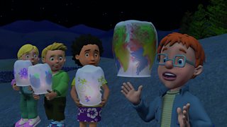 Mae Norman yn mynd i drafferth wrth drio hedfan llusernau yn yr awyr i ddathlu'r Flwydd...