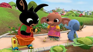 Mae Bing a Swla'n dod o hyd i daten yng ngardd lysiau Amma gyda wyneb doniol. Bing and ...
