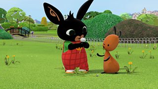 Mae Bing a Fflop yn darganfod dant y llew gwyn, gwlanog yn y parc. Bing and Fflop find ...