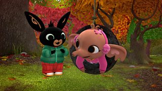 Mae'n ddiwrnod hyfryd yn yr hydref ac mae Bing a Swla yn y parc gyda Fflop yn casglu me...