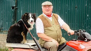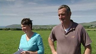 Dai Jones sy'n ymweld ag Alan a Catrin Williams ar fferm Gwythrian, ger Aberdaron, ym M...