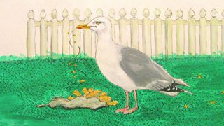 Today’s visitor is a seagull who has flown into the garden from the seaside.