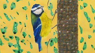 Robin is joined by his little neighbour, the bright and bold Blue Tit.