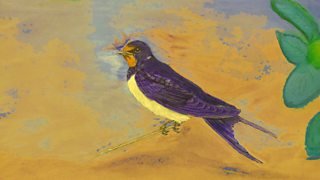 Robin is visited by a speedy swallow and catches a glimpse of some baby birds.