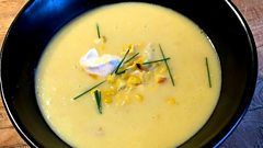 Smoked chicken and roasted corn soup