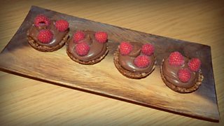 With Candied Whiskey Chocolate Mousse and Raspberries