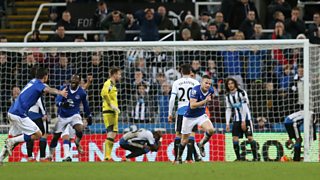 Tom Cleverley's injury time header secures a 1-0 Everton win at Newcastle.