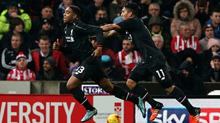 Jordan Ibe's goal gave Liverpool a slender 1-0 lead against Stoke City.