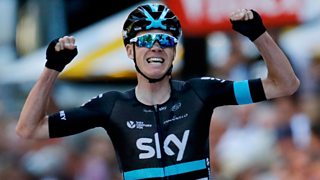 Defending champion Chris Froome wins stage eight to take the yellow jersey.