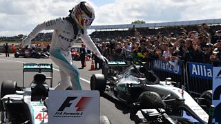 Mercedes' Lewis Hamilton wins his third successive British Grand Prix.