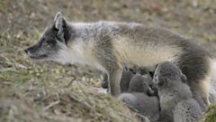 Playful arctic fox cubs