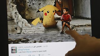 Syrian children use pictures from Pokémon Go to draw attention to their plight.