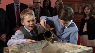 Mae Charlie a'i gefnder, Noa, wedi penderfynu cael eu bedyddio - iddyn nhw gael perthyn...