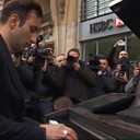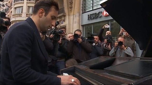 Picture: Davide Martello plays his piano ooutside the Bataclan Theatre in Paris