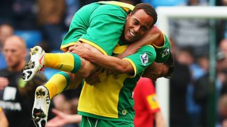 Mbokani scores Norwich City's second as they beat Aston Villa 2-0 in a vital game.