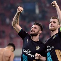 Giroud hat-trick sends Arsenal through in Europe
