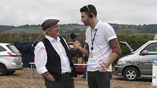 Charlie Taylor speaks to people in the queue for the Antiques Roadshow in Minehead.