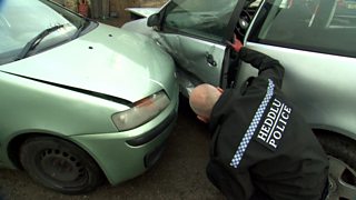 DC Mike Adams of Gwent Police talks through CCTV of the fraudsters stripping down a stolen van to reuse as parts.