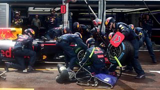 Red Bull mechanics forgot to have the tyre's ready for Daniel Riccardio's pit-stop change