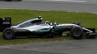 Lewis Hamilton and Nico Rosberg crash into each other on the opening lap