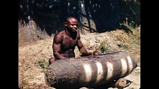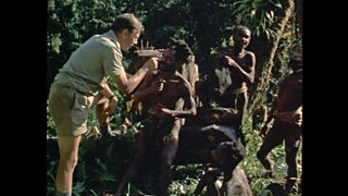 David Attenborough plays back sound recordings to astonished villagers in Sierra Leone.