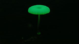 David Attenborough introduces the world of glowing fungi, in the soil and above ground.