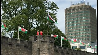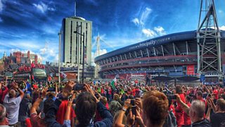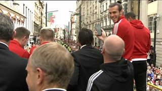 Dylan Jones yn fyw o ganol Caerdydd wrth i Gymru gael eu croesawu'n ôl wedi Euro 2016.